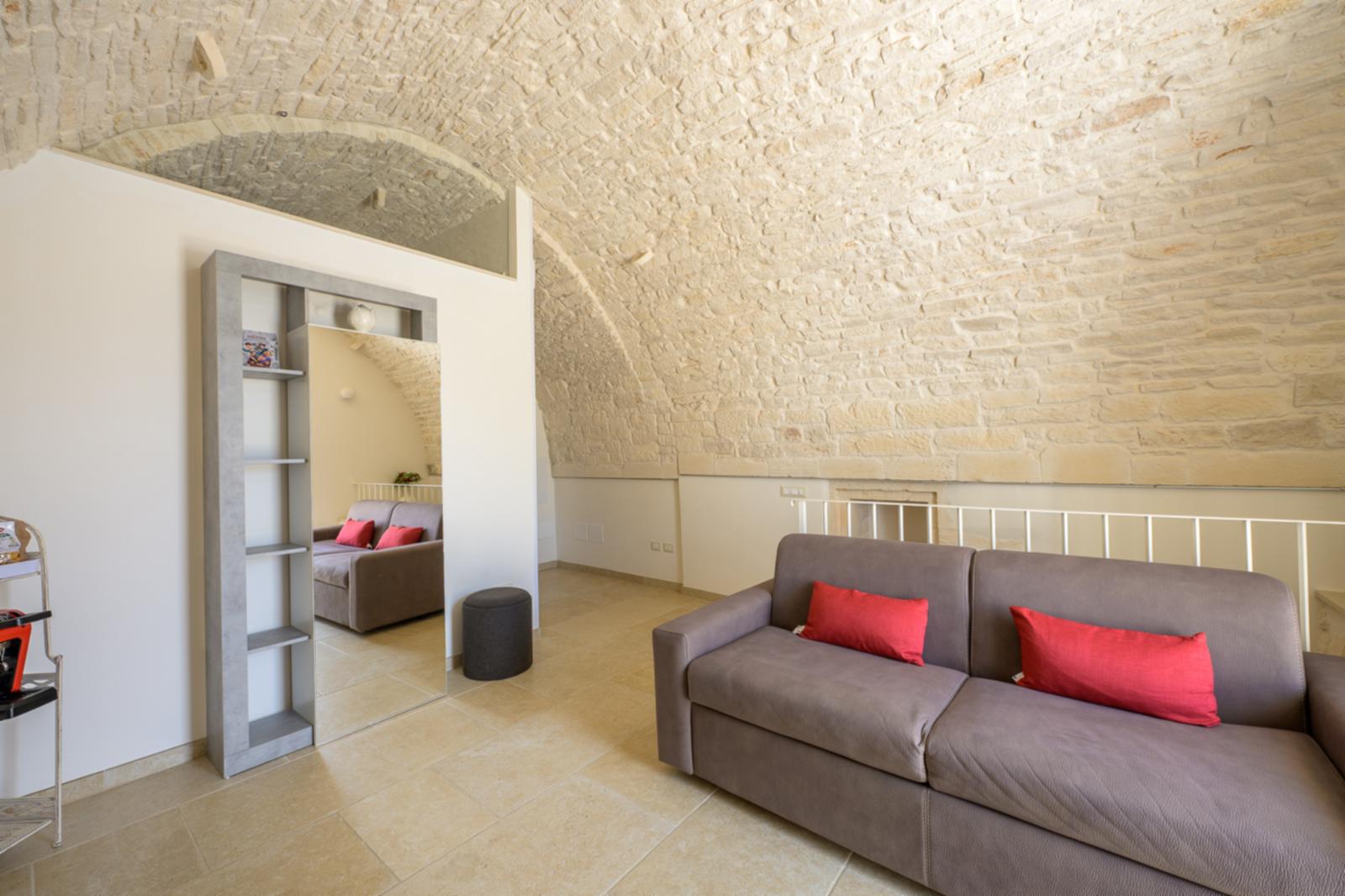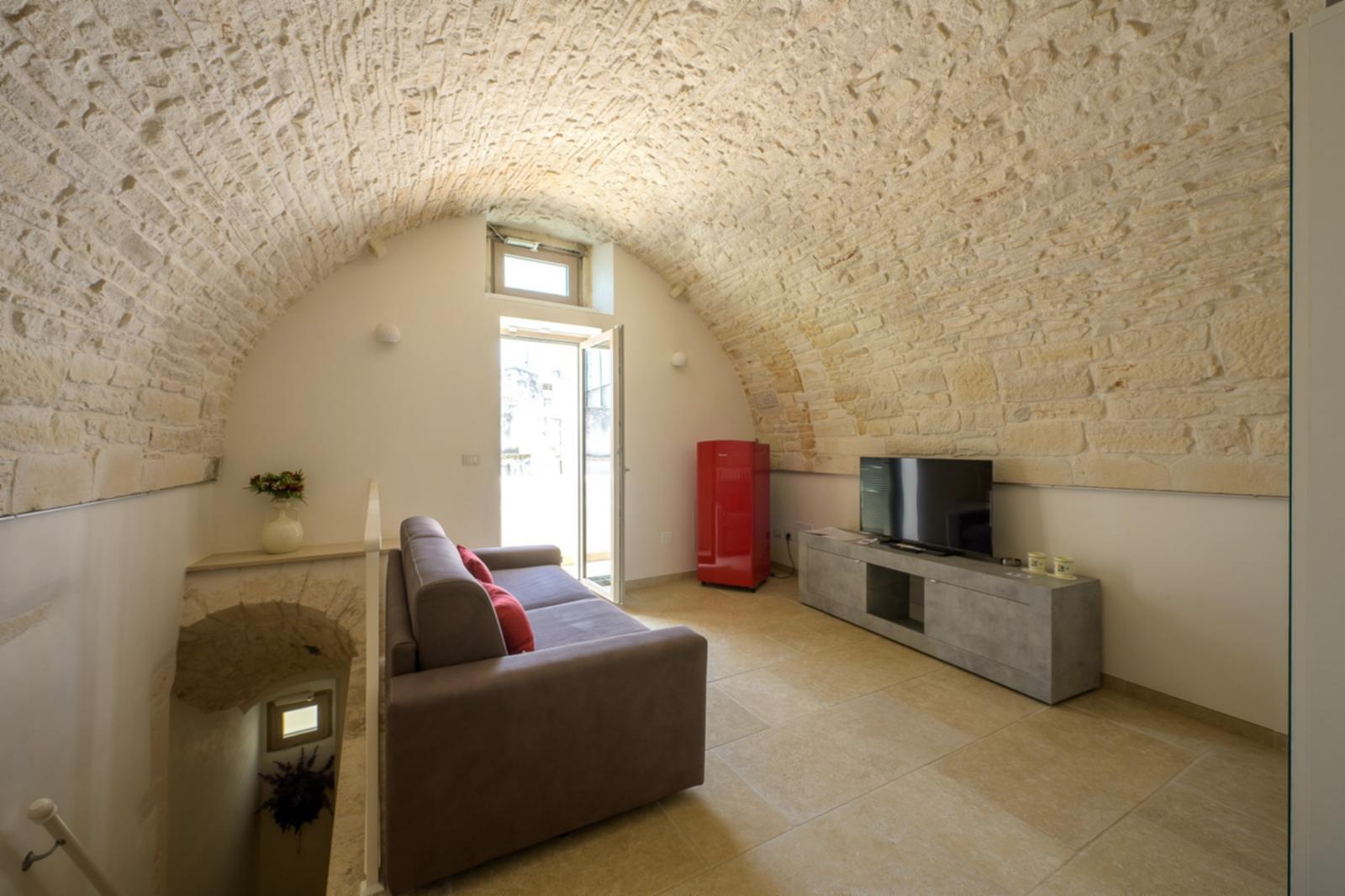 2. La camera “Alcova”, ideale per una coppia con bambini, è composta da una stanza con letto matrimoniale, un soggiorno con divano o divano letto (a seconda del numero di ospiti), frigo, balcone e bagno privato. L’appartamento dispone di un impianto di riscaldamento e raffreddamento, smart tv, wi-fi gratuito e asciugamani per tutti gli ospiti. Colazione inclusa nel prezzo.
