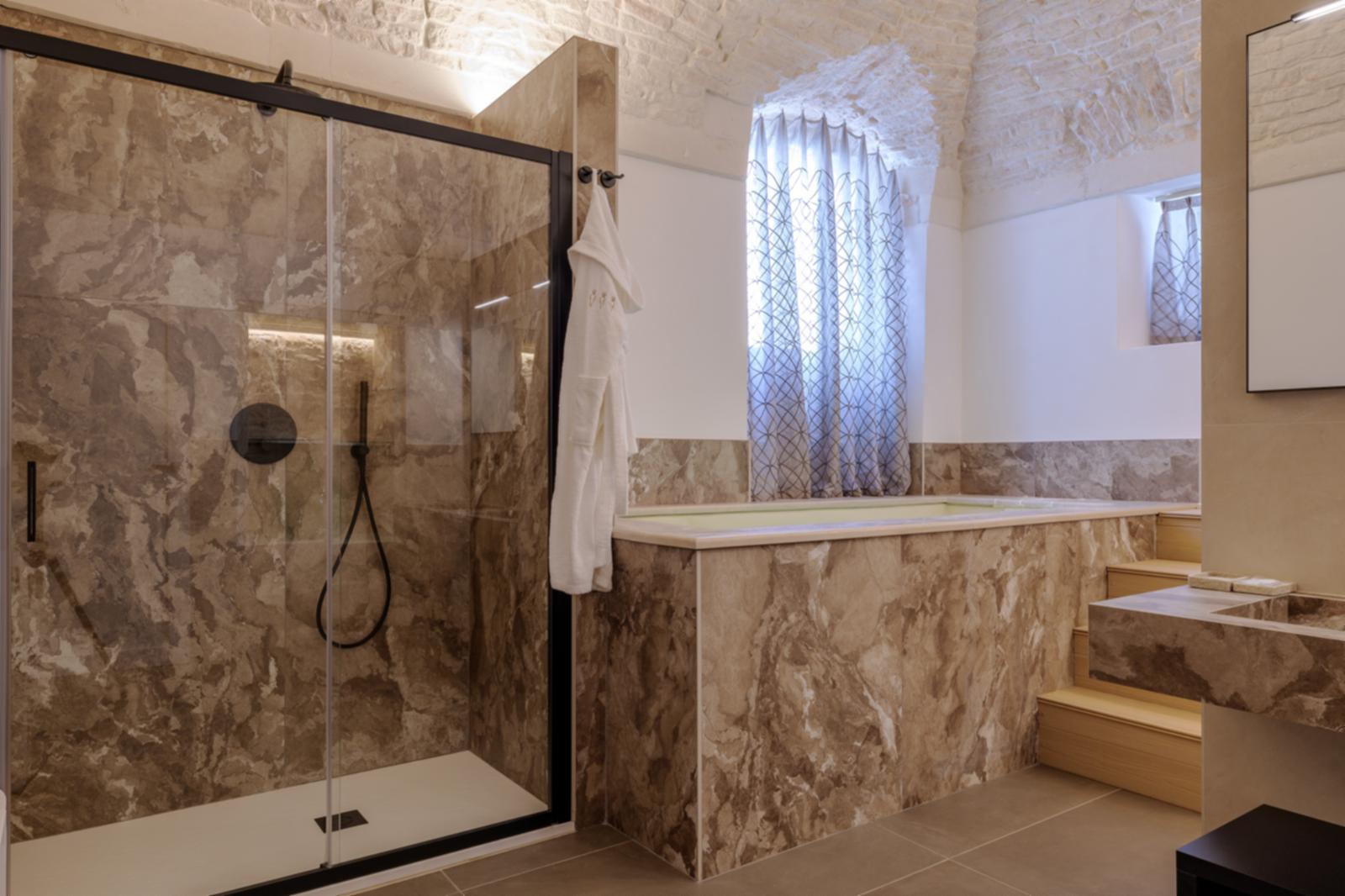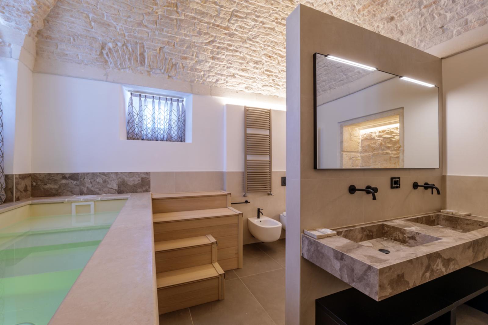 Each suite has been designed to offer an experience of absolute relaxation, with exclusive features such as a sauna or private pool. Furthermore, from the heated pool on the terrace, you can enjoy a breathtaking view of the historic center of Martina Franca.